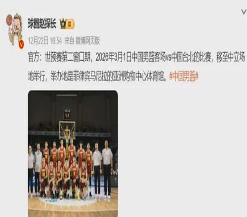 值得一提的是,明年3月1日中國男籃VS中國臺北隊的比賽,將移至中立場地舉辦,地點(diǎn)位于菲律賓馬尼拉的亞洲購物中心體育館。