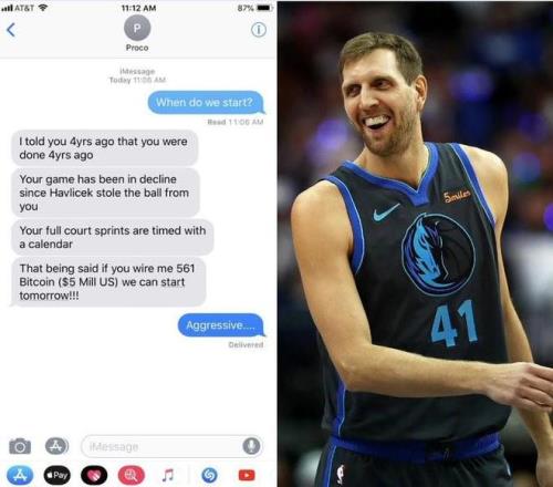 北京時間今日,美媒NBA Memes曬出了一張獨行俠傳奇球星德克-諾維茨基與其訓(xùn)練時的聊天記錄,記錄中兩人就諾維茨基的訓(xùn)練內(nèi)容進行了交流。