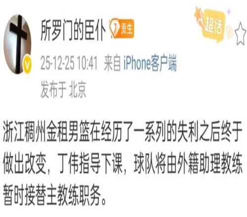 CBA新賽季開始之后,浙江男籃揭幕戰(zhàn)就爆冷在主場輸給了寧波富邦,隨后更是一直輸,雖然也贏了福建男籃,但慘敗給上海男籃之后,浙江男籃高層也是不能繼續(xù)等待,畢竟球隊(duì)有失控的趨勢。