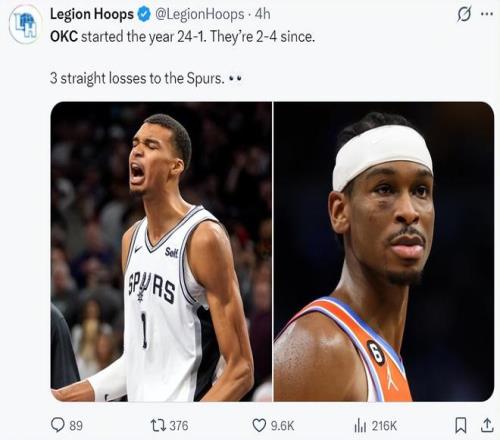 雷霆一戰(zhàn)吞7恥辱紀錄!73勝概率跌至5%被馬刺三殺衛(wèi)冕SGA最扎心