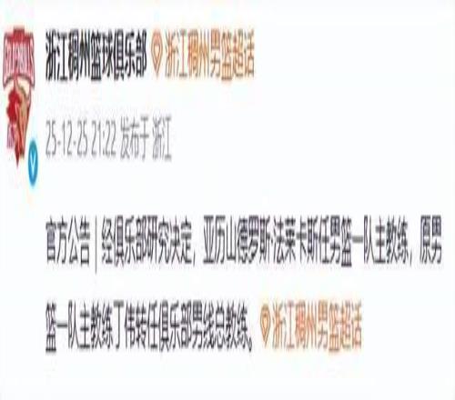 和在山東隊下課不一樣的是,那時候,丁偉離開了山東男籃。這一次呢?丁偉并沒有離開浙江男籃。根據(jù)浙江男籃自己官宣的消息,丁偉不但沒有離開,反而是升級了,成為了浙江男籃總教練——這就好比當年在山東男籃的宮魯鳴一樣,只是總教練,至于干什么事兒呢,我覺得吧,主要就是領(lǐng)工資的。